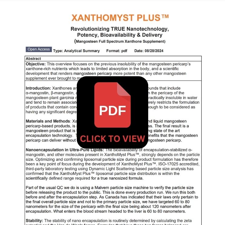 XanthoMyst Plus harnesses mangosteen, nature’s original superfruit, packed with up to 70+ xanthones—powerful compounds that combat oxidative stress, the root cause of aging. With advanced nano-mist technology, it delivers fast absorption for maximum impact, supporting cellular health, immunity, and youthful vitality. The pericarp (rind) of mangosteen holds the highest concentration of xanthones on earth—and now, you can experience their power like never before.